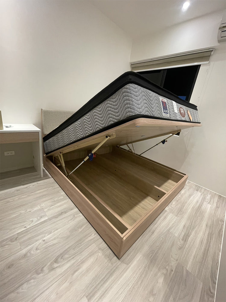 A lift-up bed isn't just for extra storage. It is there to help you organize your life and maintain peace of mind even in a limited living environment.